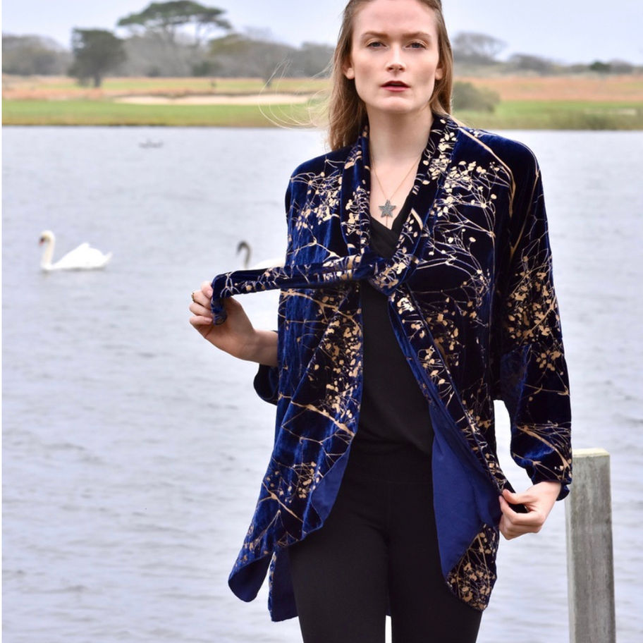 This flattering style comes in a variety of luxuriuos fabrics......it is versatile can be tied and worn several ways and is comfortable as well as enchanting! Fits all sizes.